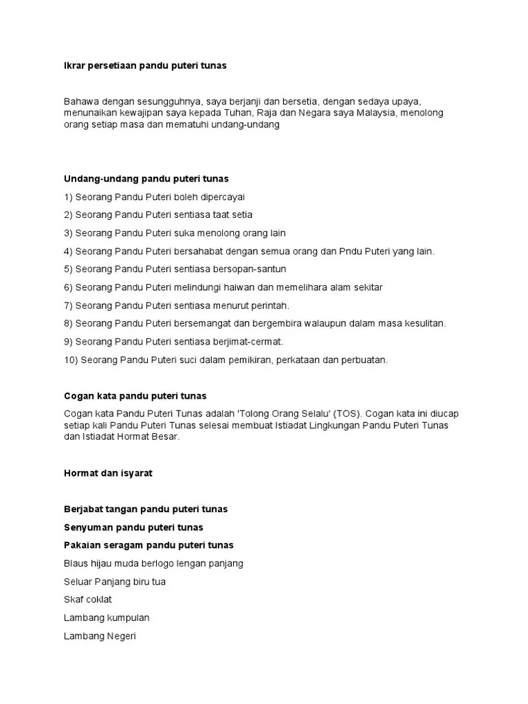 Ikrar persetiaan pandu puteri tunas 2. 10.7 berjabat tangan pandu puteri tunas berjabat tangan. Ikrar persetiaan pandu puteri tunas (2).docx. Ikrar persetiaan pandu puteri tunas. Bagaimanakah cara berjabat tangan pandu puteri tunas. Bahawa dengan sesungguhnya, saya berjanji dan bersetia, dengan sedaya upaya, menunaikan kewajipan saya kepada tuhan, . 2,069 views aug 17, 2021 #girlguides. Institut pendidikan guru kampus raja melewar seremban, negeri sembilan kerja kursus berasaskan projek pandu puteri. Tiga bahagian ikrar pandu puteri. Cogan kata pandu puteri tun. Ahli pandu puteri perlu melafazkan persetiaan pandu puteri dengan penuh kesedaran dan. Congan kata pandu puteri tunas 4. Pandu puteri tunas menunaikan kewajipan kepada negara .